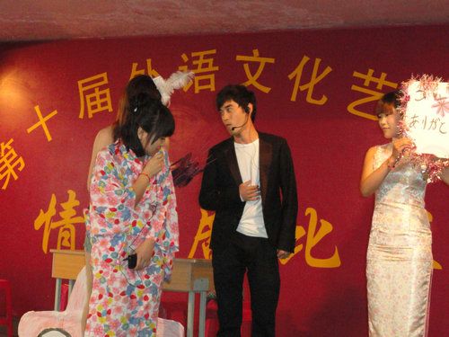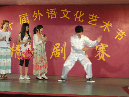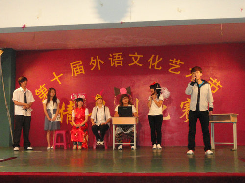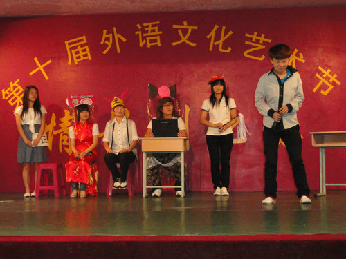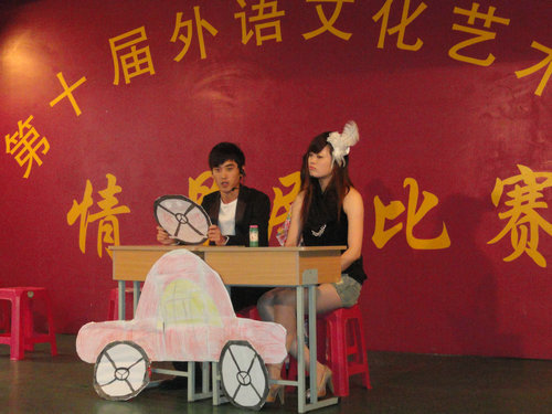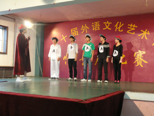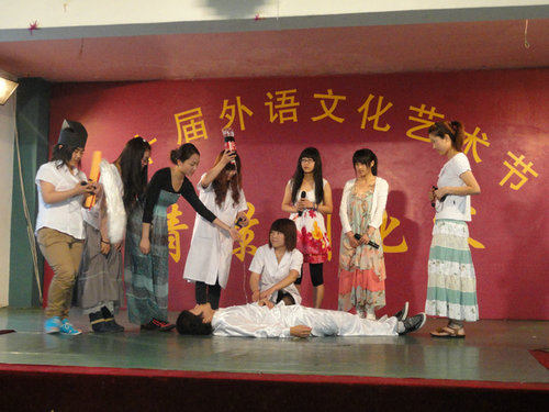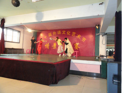 情景话剧是每年外语文化艺术节里的一大亮点,也是学生们最喜欢的一项活动之一。学生们通过情景话剧的表演,充分的锻炼了他们的表演天赋及语言天赋,把所学的专业知识运用到话剧中,寓教于乐,使他们体会到了在东方学习的快乐。